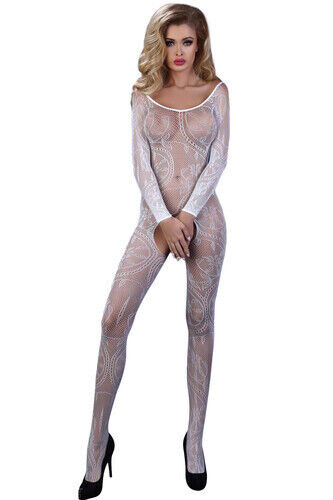 Kadın Beyaz Fantezi Vücut Çorabı Esnek Örgülü Seamless