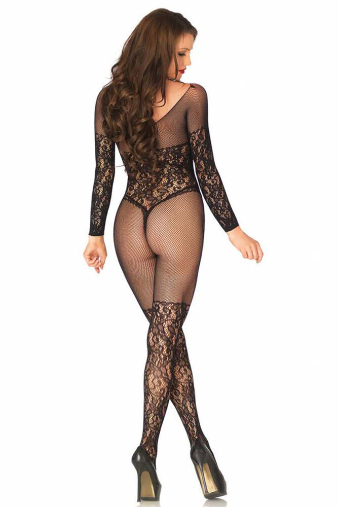 Kadın Siyah Fantezi Vücut Çorabı Esnek Örgülü Seamless