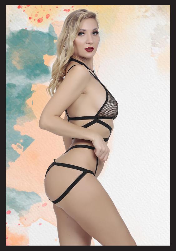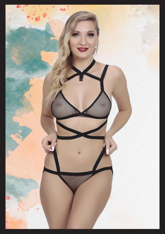 Kadın Siyah File Detaylı Fantezi İç Çamaşır Takımı