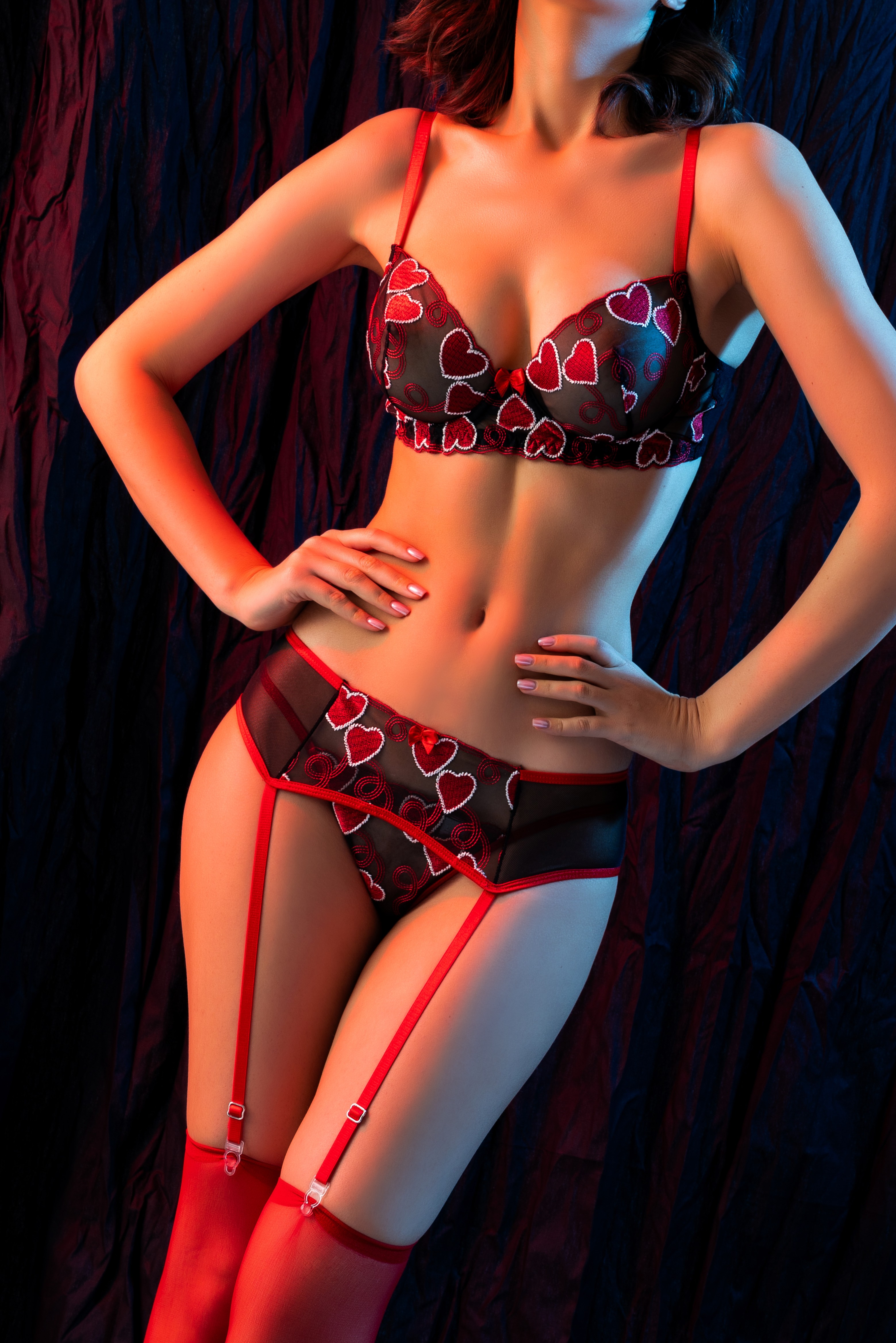 Kırmızı Dantel Jartiyerli 4’lü Fantazi İç Giyim Takımı,Transparan Ayarlanabilir Askılı,Kadın İçGiyim