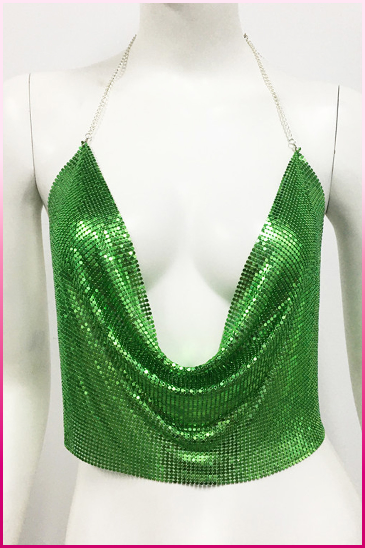Kristal Yeşil Taşlı Parlak Crop & Bluz Kolsuz Kayık Yaka Parti Plaj Büstiyer