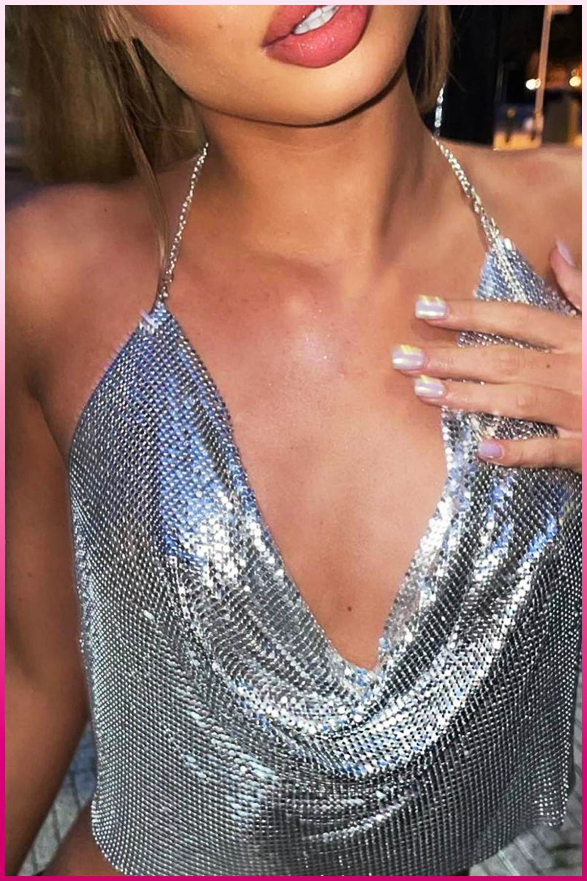 Parlak Gümüş Zırh Bustiyer,Kadın Seksi Zarif Crop
